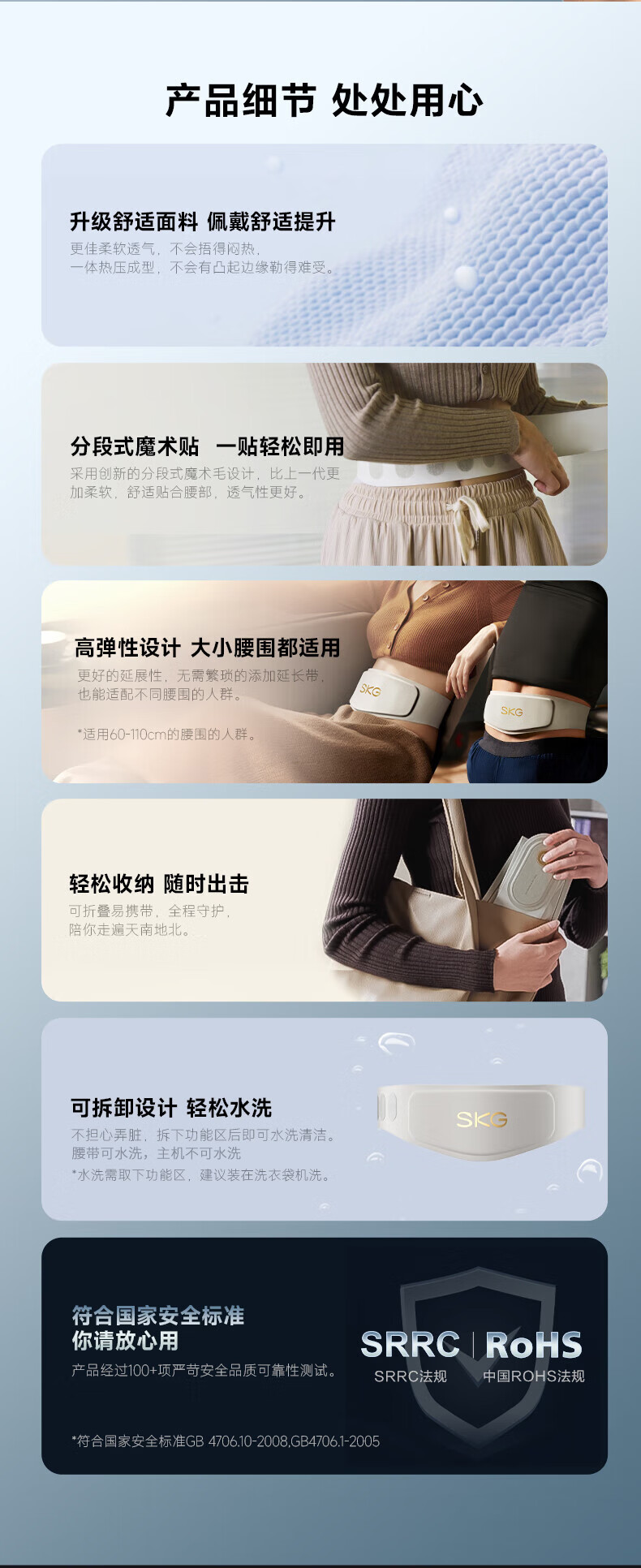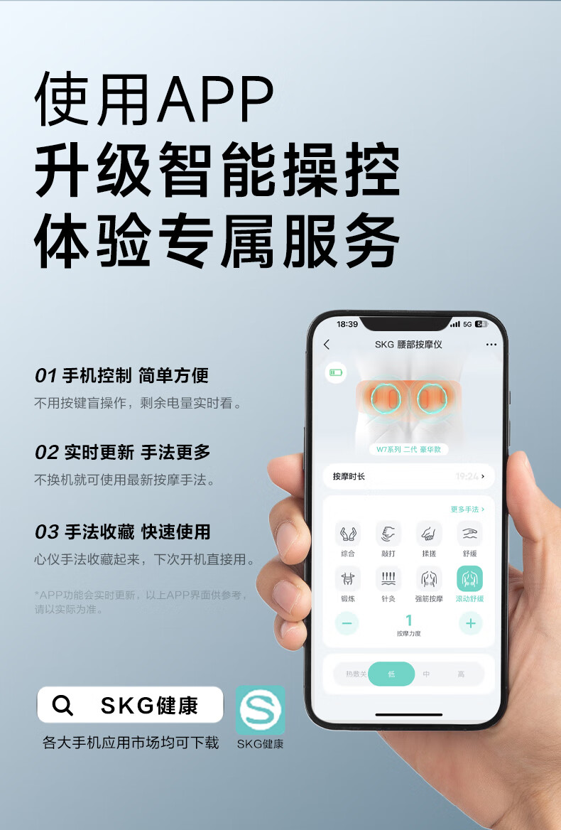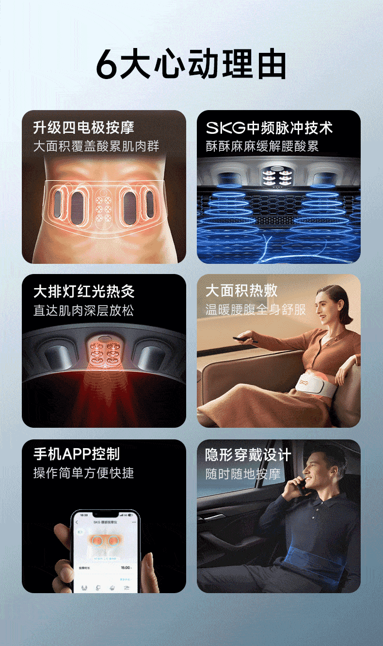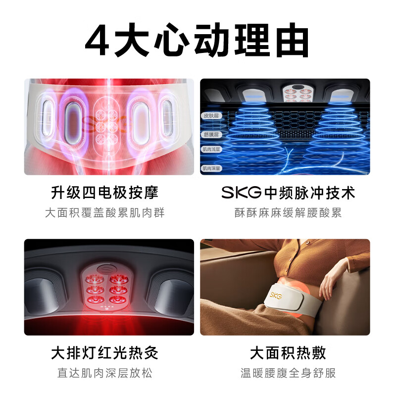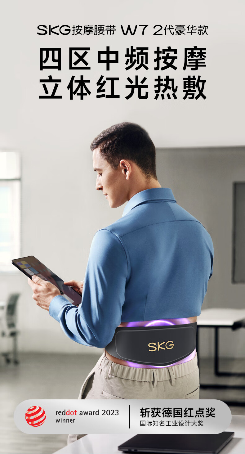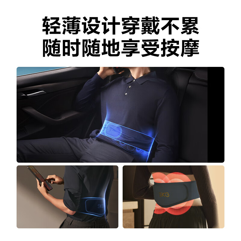 skg腰部按摩仪 中频脉冲四区揉捏缓解酸累 护腰带暖腹部神器 送男女朋友生日礼物 W7二代豪华子夜蓝