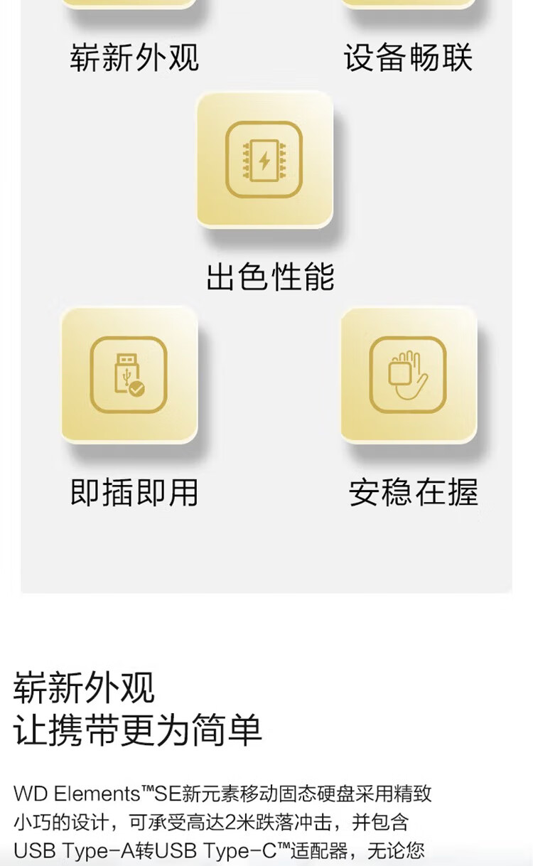 西部数据(pssd)移动固态硬盘 SE新元素系列 USB3.2 Type-C 手机电脑两用