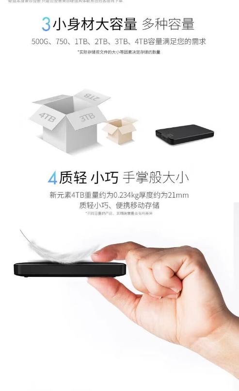 商品名称:西部数据(WD)1TB-5TB 移动硬盘 USB3.0 Elements 新元素系列2.5英寸 机械硬盘