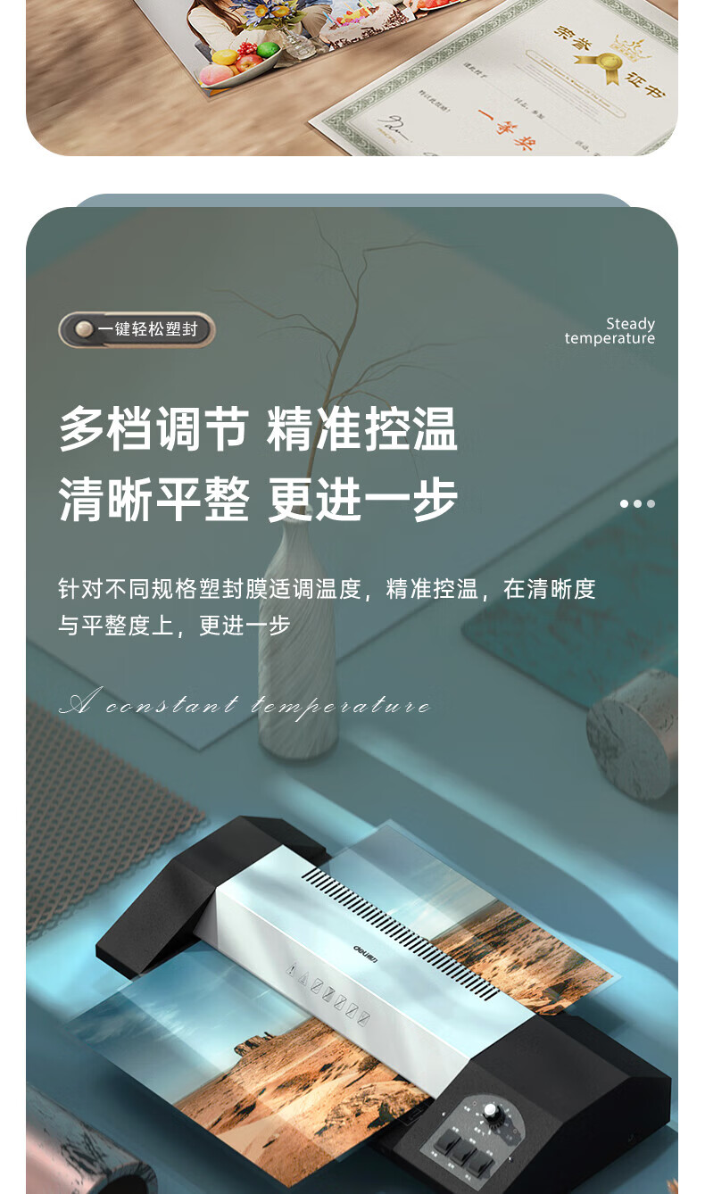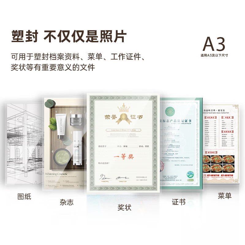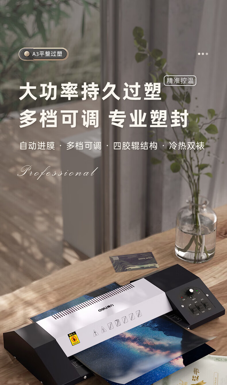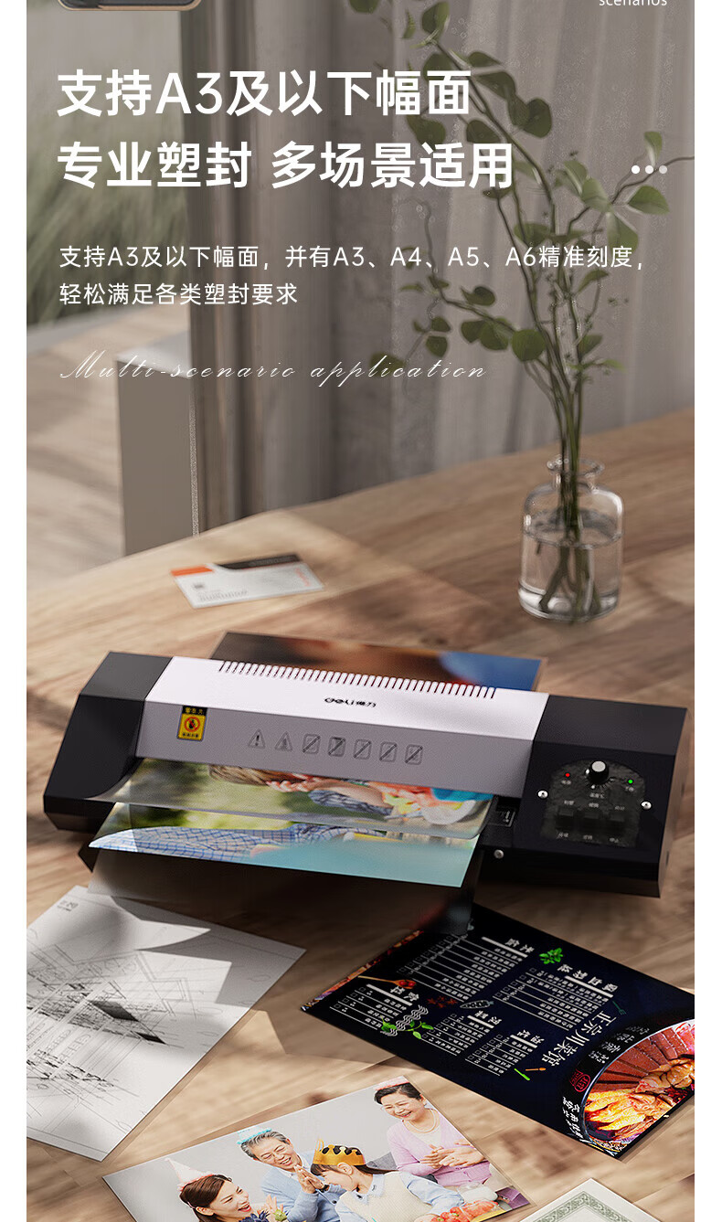 得力(deli)3890塑封机 照片 时尚过塑机 照片过胶机照片塑封机 A3/A4 全金属机身 7档控温