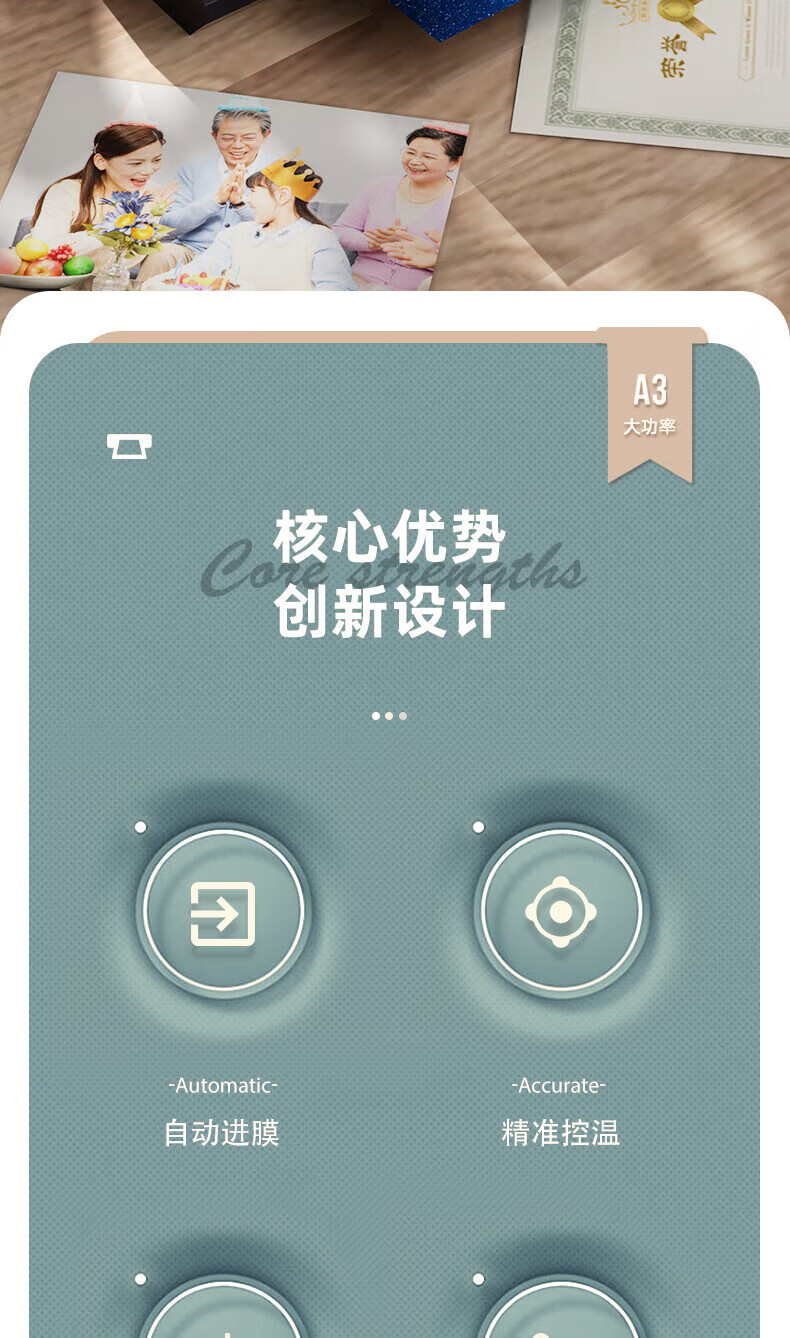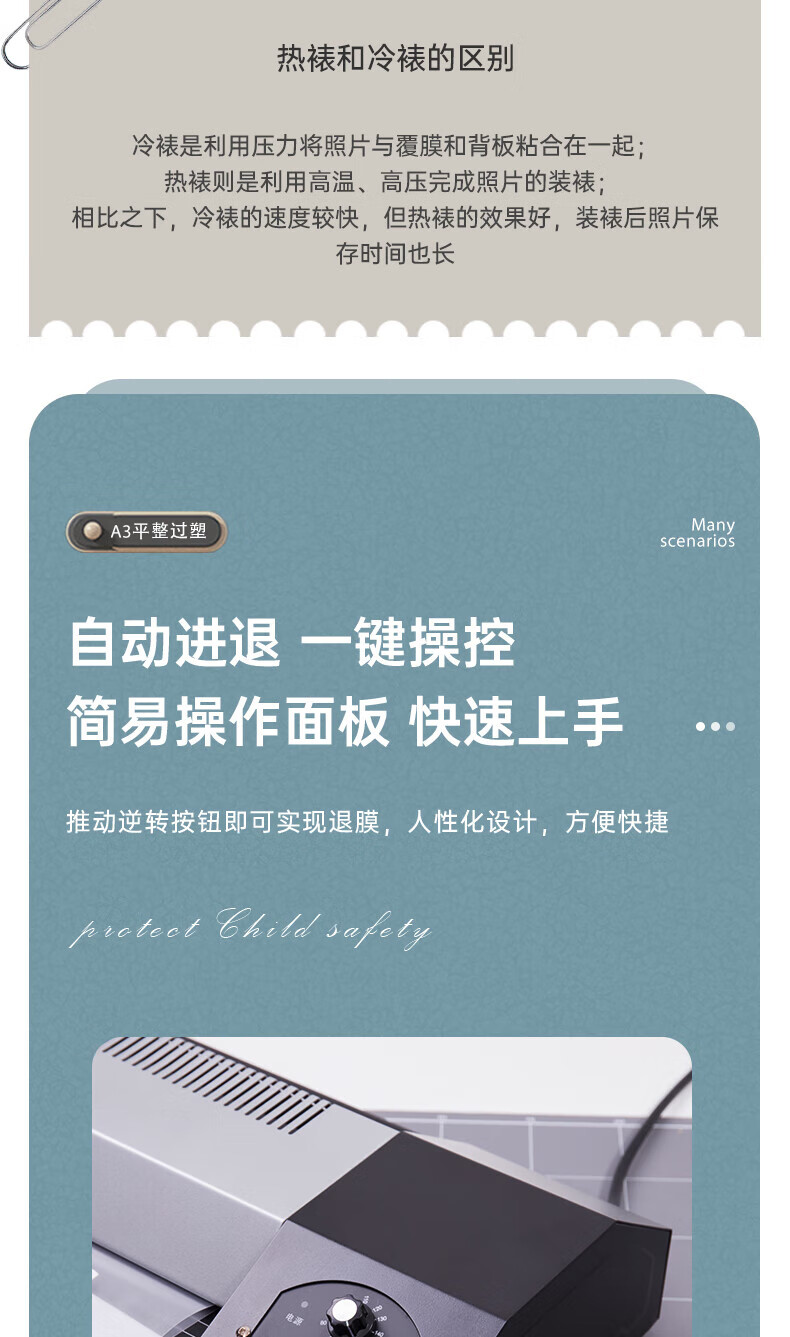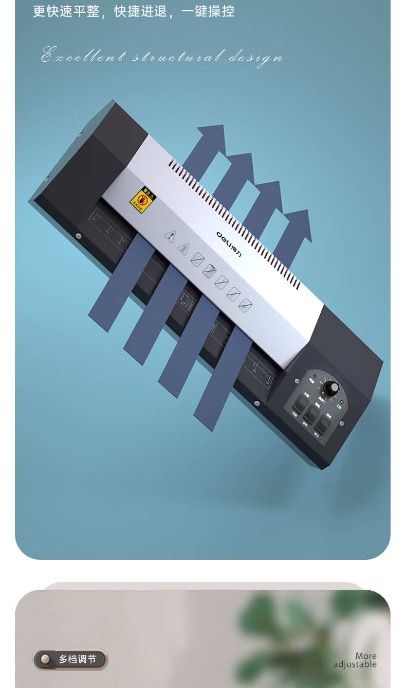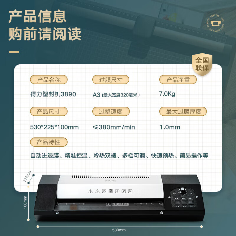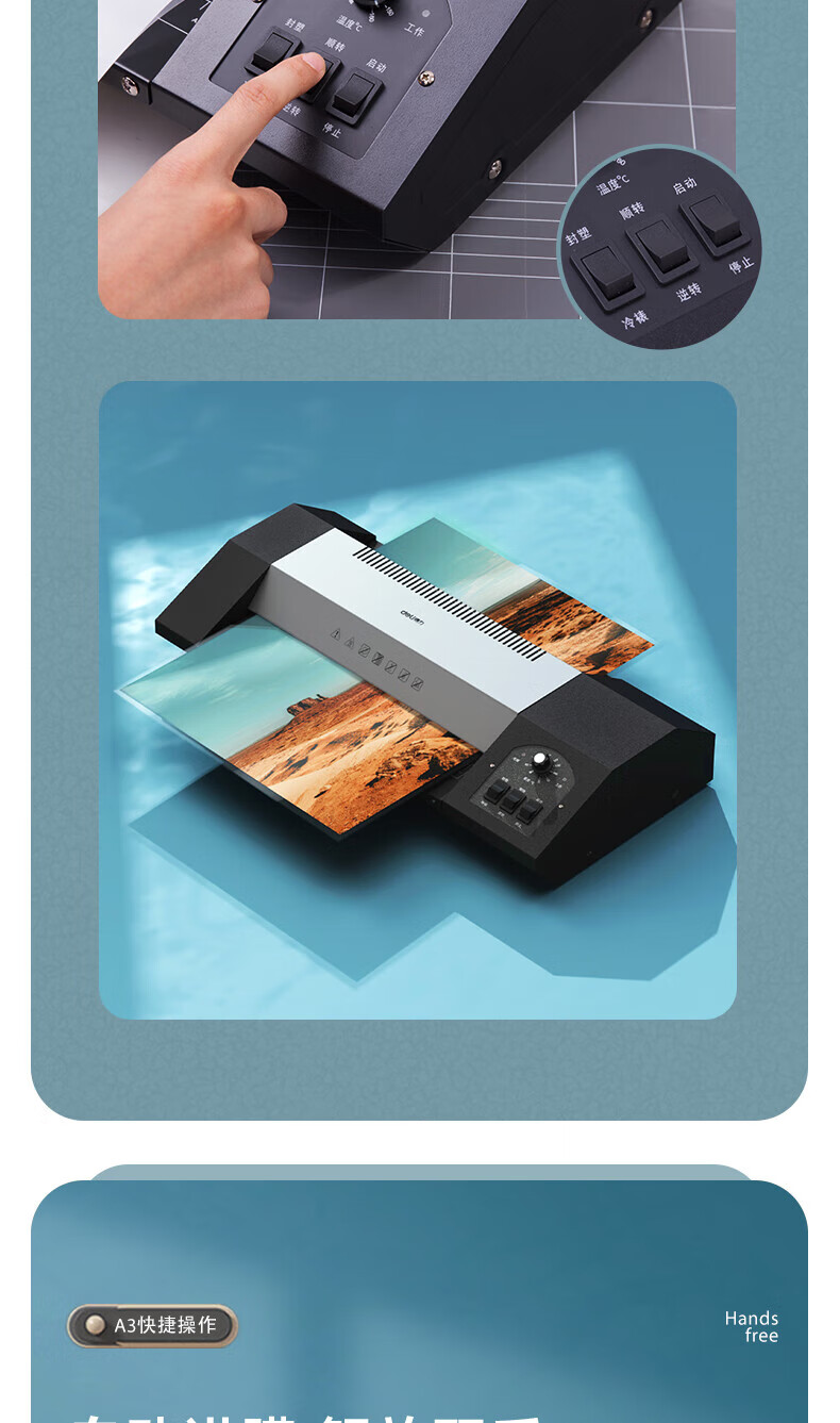 得力(deli)3890塑封机 照片 时尚过塑机 照片过胶机照片塑封机 A3/A4 全金属机身 7档控温