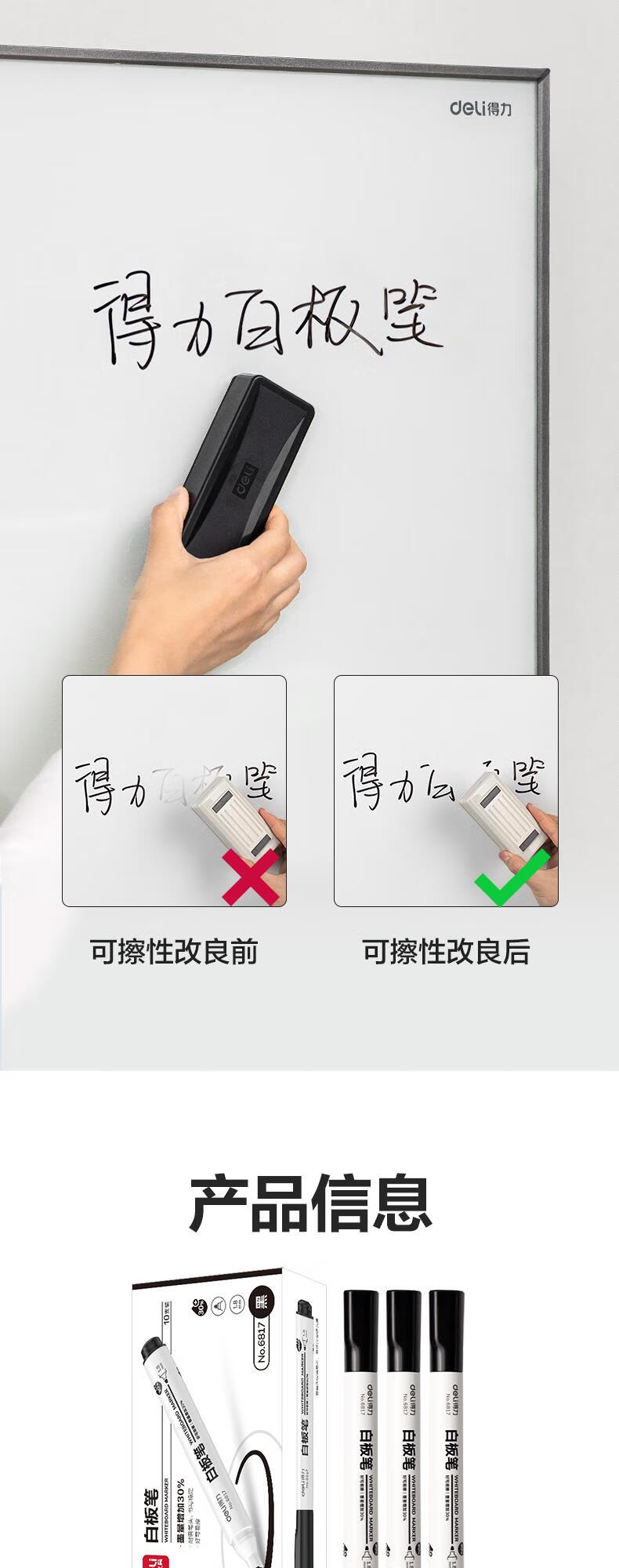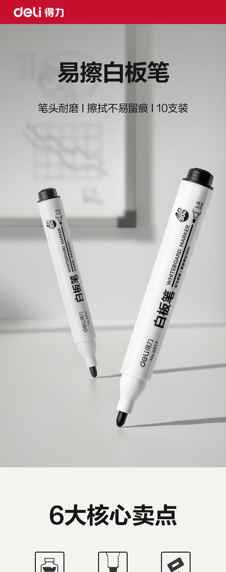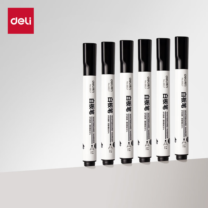 得力(deli)6817白板笔 色泽明亮可擦易擦 黑色10支/盒 办公用品