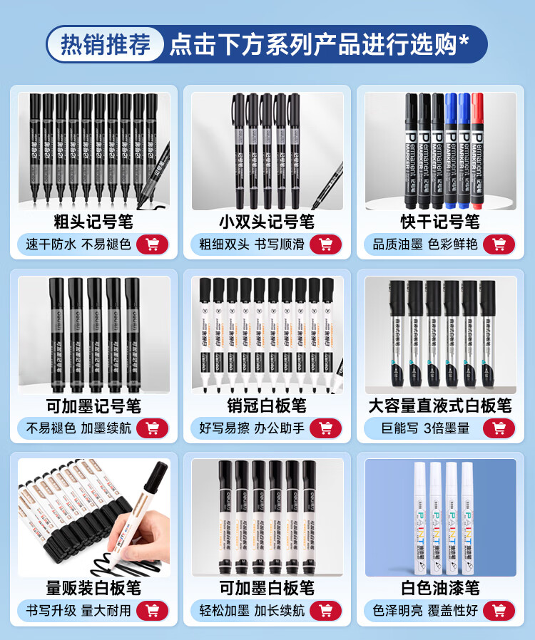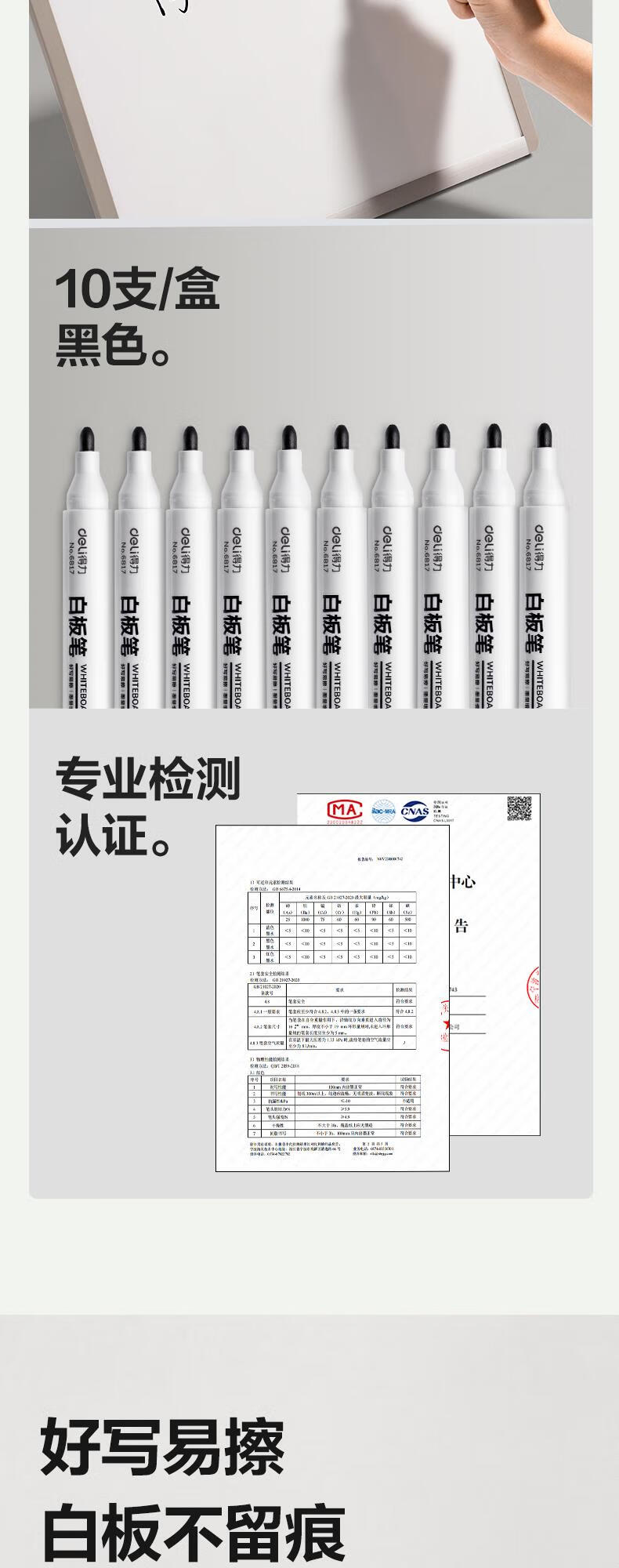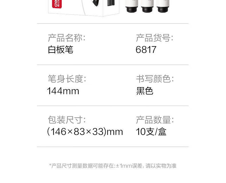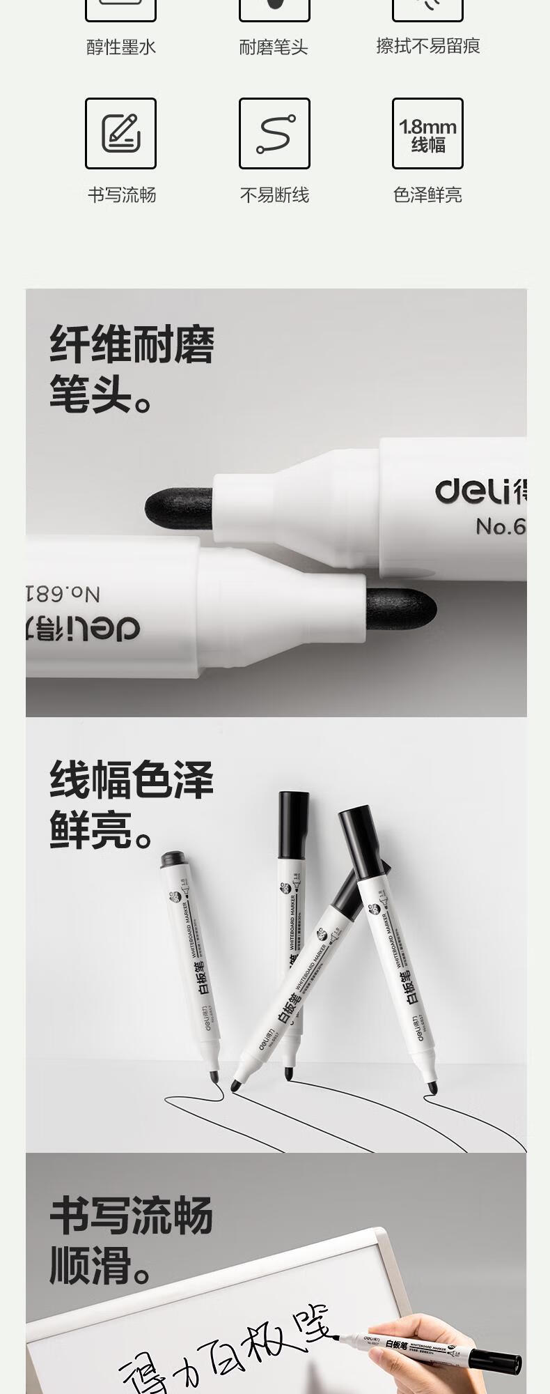 得力(deli)6817白板笔 色泽明亮可擦易擦 黑色10支/盒 办公用品