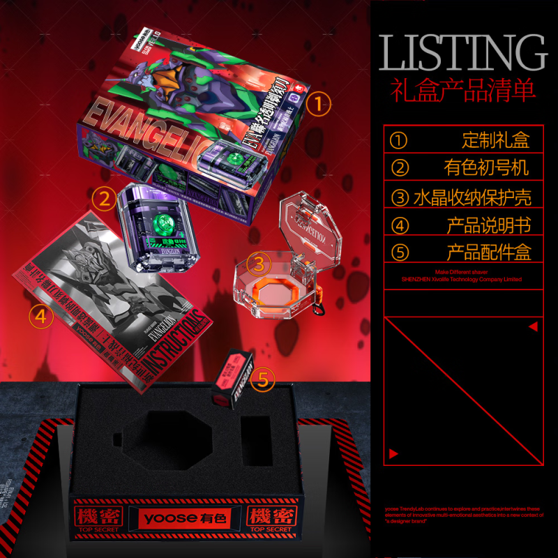 商品名称:有色yoose有色电动剃须刀EVA初号机联名透明便携刮胡刀情人节礼物 EVA初号机联名款 礼盒装