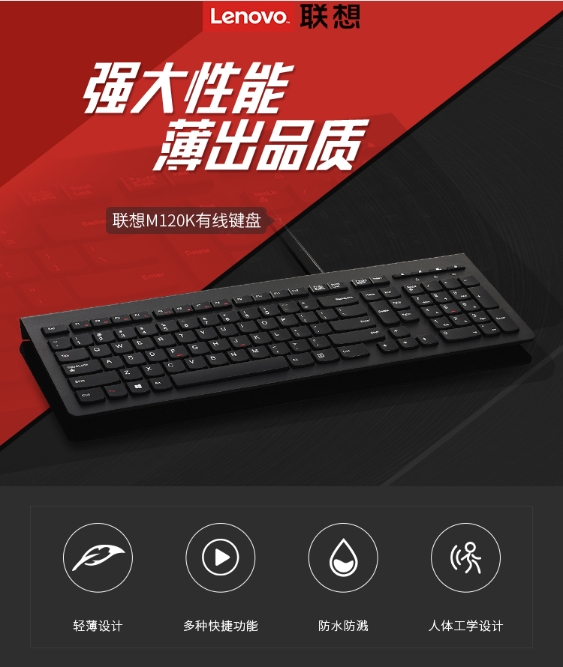 商品名称:联想(Lenovo)键盘 有线键盘 M120K有线超薄键盘 电脑办公键盘 巧克力按键笔记本键盘 防水键盘
