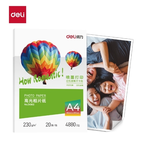 得力ZX002高光相片纸A4-230g/m(白)(20张/包)